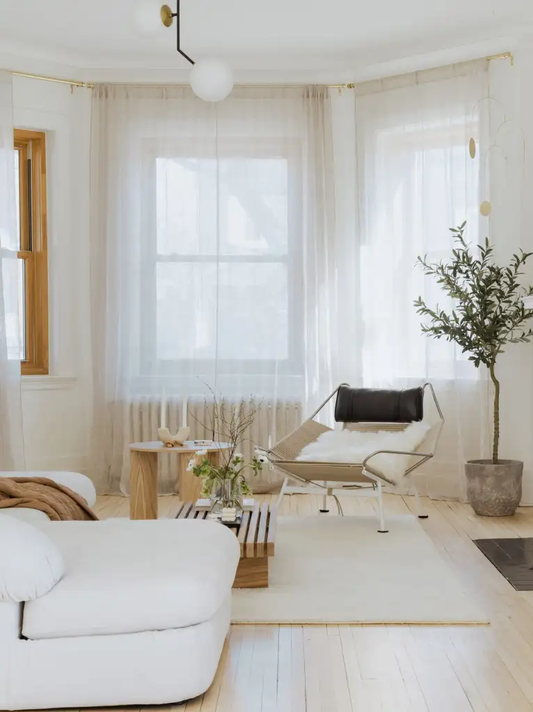 Textures add warmth: a linen curtain, a cotton rug, a handmade ceramic vase. Together, they make the room feel alive, without clutter.